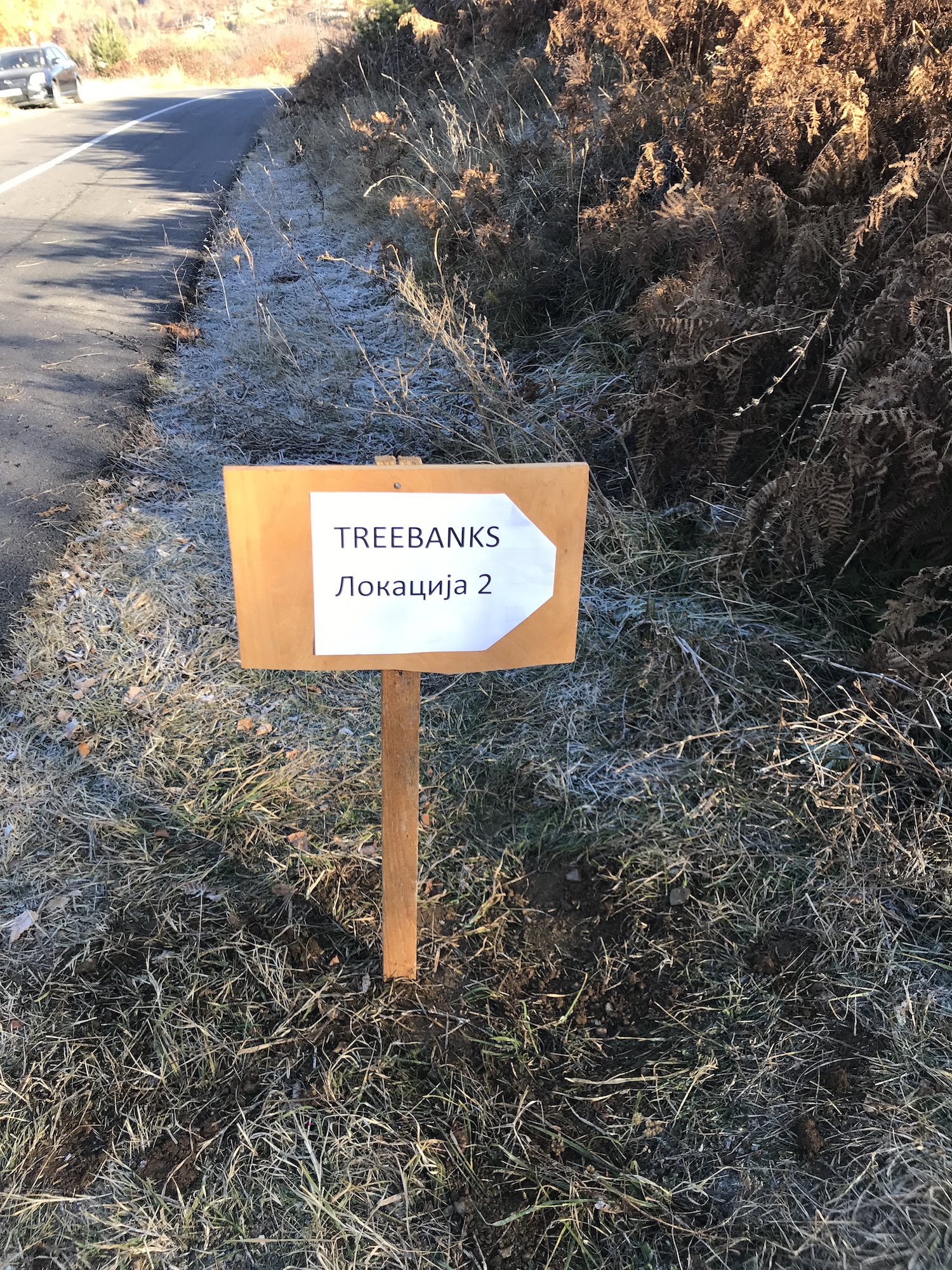The flow was as following. Meet at checkpoint. You are given small water bottle (later to be refilled), gloves for working. offered a snack (sandwich for now or later) or hot tea or hot rakija. And then your are sent to the location according to which team you belong to (Planters, Drillers or Diggers). Shortly after the checkpoint was setup, the first volunteers arrived. Biljana and her friends came from Skopje in order to help us planting.
