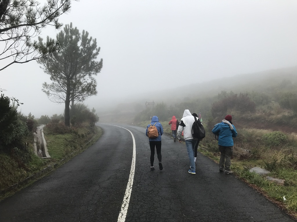 It wouldn’t be Portugal if we did not stop to take the daily coffee dose. A short break was due on the way to Pico Arreiro and the ecology camp. The weather was foggy, cold with mist around us. Let’s say some of us (including me) were not prepared for the damp weather, we god carried away by the sun in the past days.
