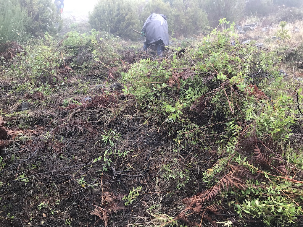 The area where we were working was heavily destroyed by fires in the past. The goal of Amigos do Parque is to create environment in which the native plants will thrive. And in the future the native to overpower the invasive ones. Amigos work and willingness to achieve this surprised me. They plant bushes that retain water to thrive in symbiosis with the laurel trees. The idea is the laurels to use that water and grow faster.