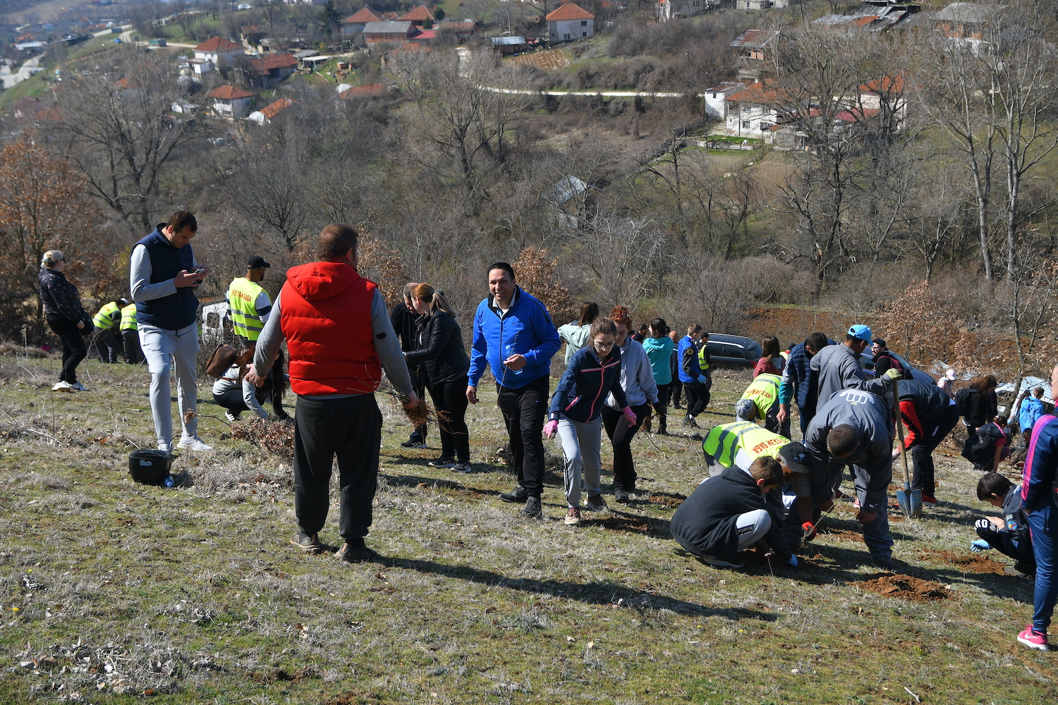 Neven was distributing the seedlings to the volunteers. Around 100 people came to plant a tree. Each of the volunteers learned how to plant a tree and undergo the short planting tutorial directly with Mitko.